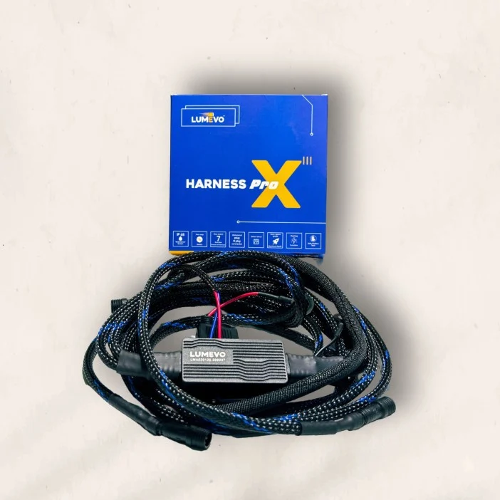 The Lumevo Harness Pro X3 is a heavy-duty, waterproof harness built with precision and reliability in mind. Featuring a solid-state relay and advanced smart functions, it delivers long-lasting performance under extreme riding conditions. Optimized for seamless use with Lumevo lighting and switches yet designed to remain universally compatible with most motorcycle and automotive setups — it’s the harness you can trust for safety, convenience, and durability.